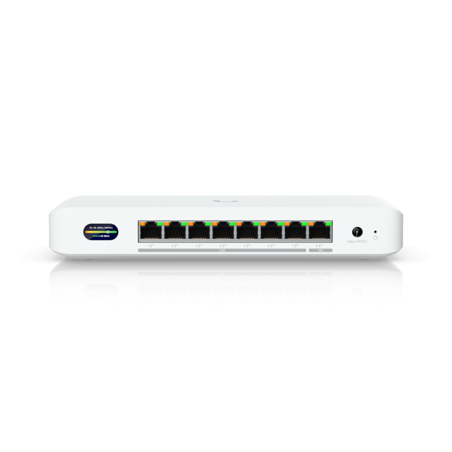 El Ubiquiti Device Bridge Switch (UDB-Switch) es un conmutador PoE+ compacto pero potente, diseñado para redes modernas de alta capacidad que requieren tanto rendimiento cableado como flexibilidad inalámbrica. Cuenta con un puerto Ethernet de 10 GbE y siete puertos de 2,5 GbE, lo que permite una rápida agregación de puntos de acceso, cámaras, estaciones de trabajo y otros dispositivos de red. Lo que distingue al UDB-Switch es su puente inalámbrico WiFi 7 (preparado para 6 GHz) integrado, que le permite establecer un enlace ascendente inalámbrico de alto rendimiento con la infraestructura WiFi UniFi sin necesidad de utilizar fibra o Ethernet. Con soporte para anchos de banda de canal de hasta 320 MHz y velocidades de datos de hasta 5,8 Gbps en la banda de 6 GHz, el dispositivo ofrece enlaces de baja latencia y alta capacidad adecuados para implementaciones exigentes en empresas y campus. Esta combinación de conmutación multigigabit y puente inalámbrico avanzado hace que el UDB-Switch sea una solución ideal para lugares donde el cableado es limitado o poco práctico.